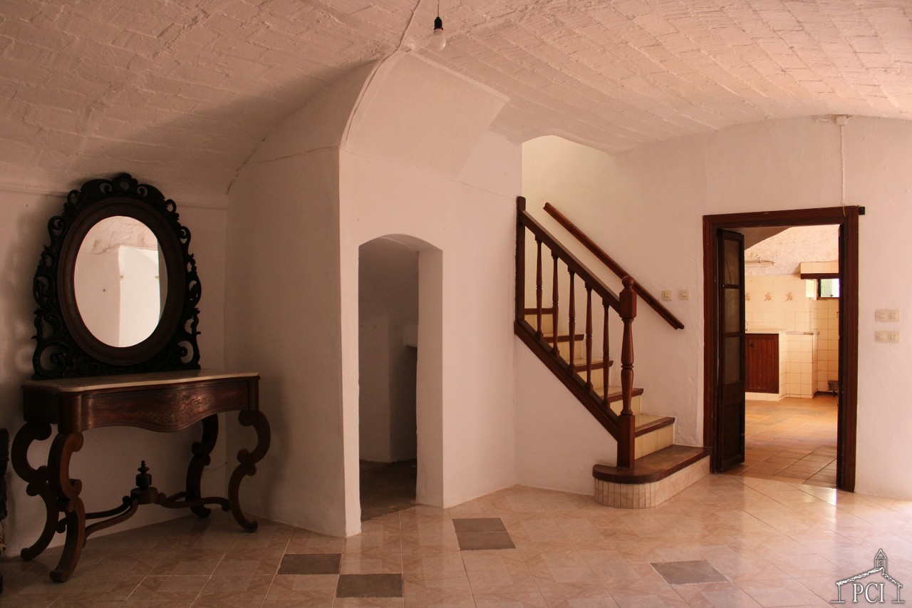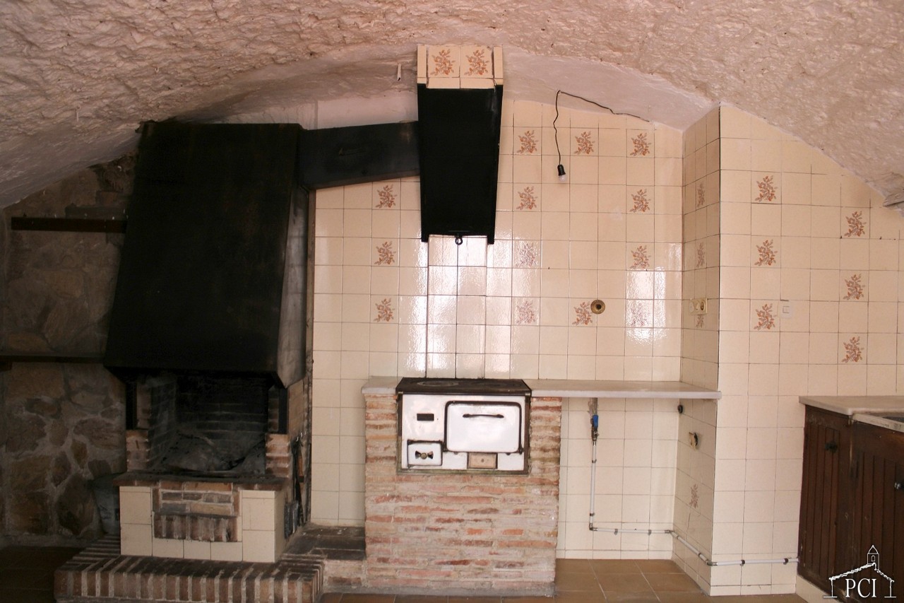 Distributed over three floors, on the entrance floor it has an entrance hall, a living room with access to a terrace, a kitchen with a fireplace and also with access to a terrace, and another room. On the large terrace there is an elevator that goes up to the first floor, a laundry room, a toilet and an access to a stone cellar with an old laundry room.