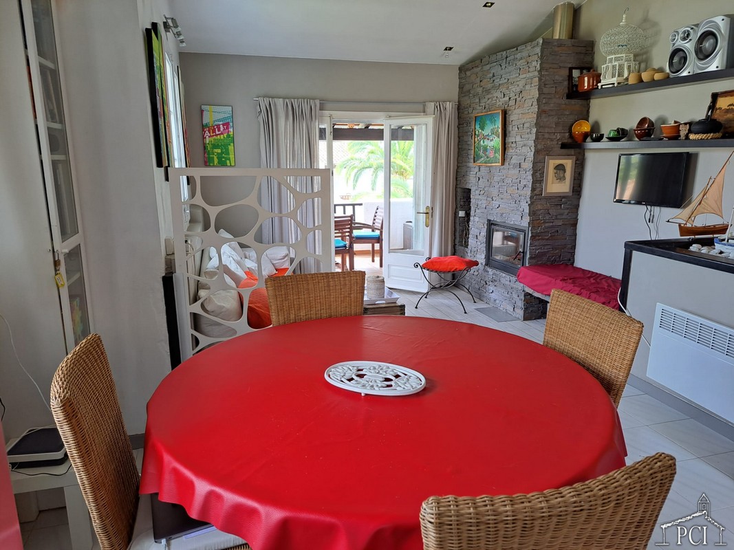Distributed on two levels. On the ground floor there is an equipped opened kitchen, a living dining room with fireplace an access to a terrace and stairs to go a large private garden with access to the community pool.