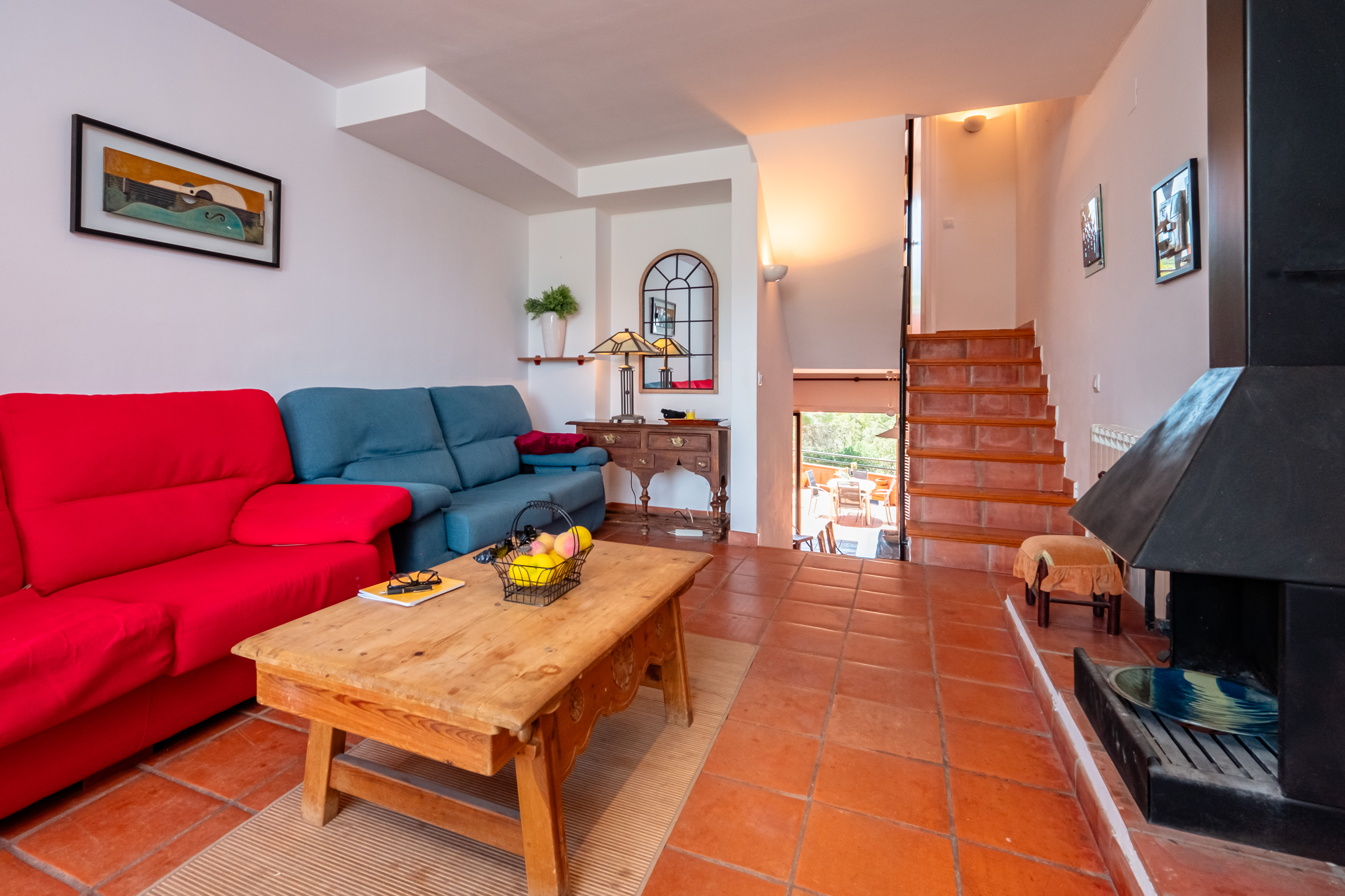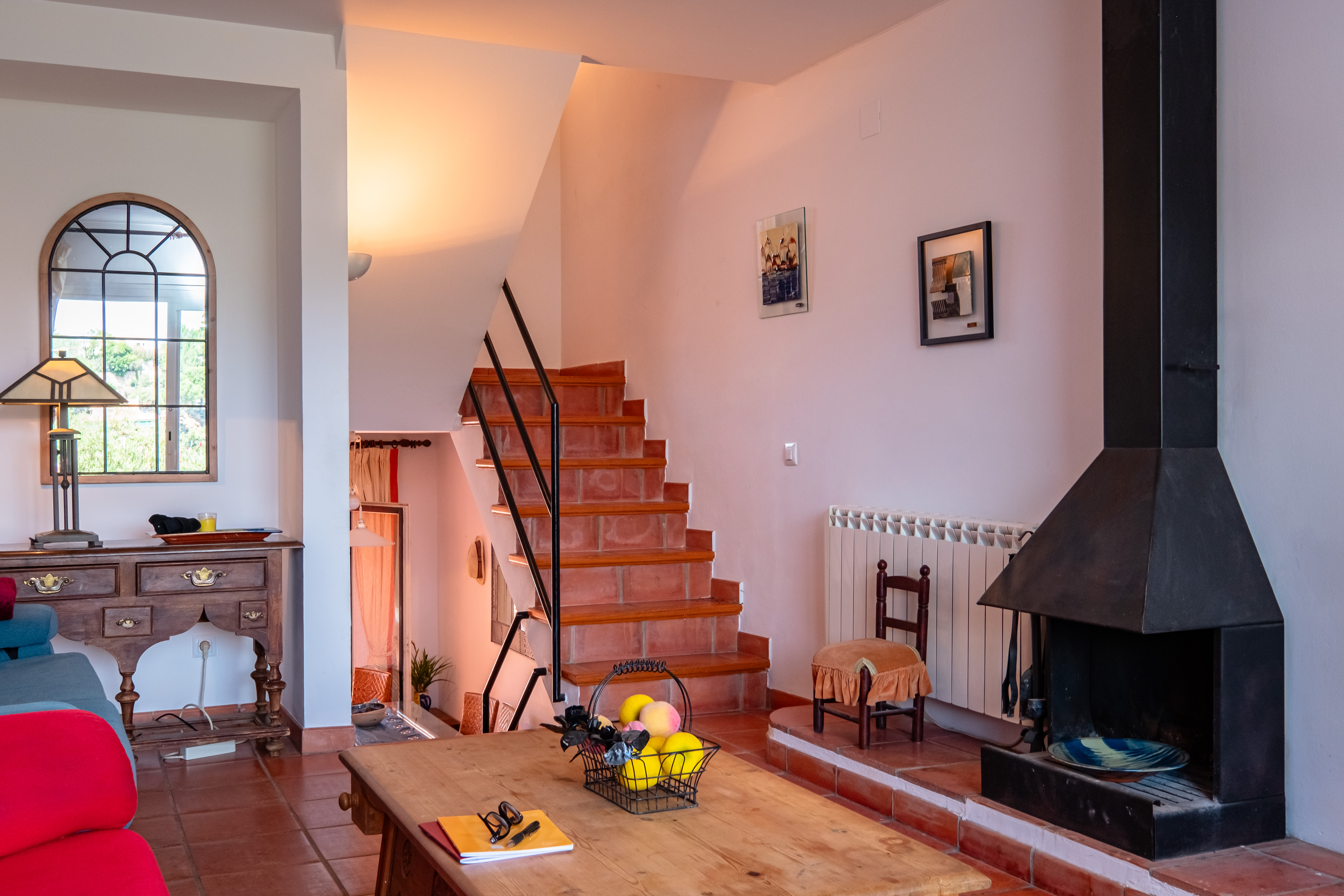 This residence, distributed over several levels, offers a unique living experience in the heart of Catalonia. Access is through a common area, which leads to a private garden and a porch furnished with sofas and garden armchairs, inviting rest and contemplation. The main living room, equipped with a fireplace and fiber WiFi connection, offers a warm space for conviviality.